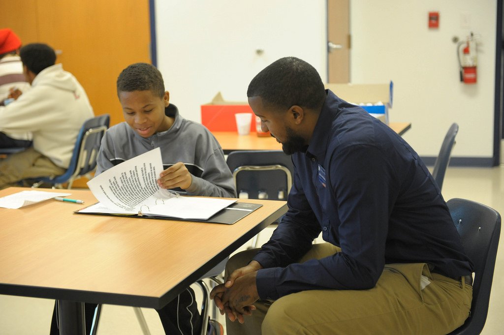 A volunteer with the Society of St. Vincent de Paul USA is pictured in an undated photo working with a young man. (OSV News photo/courtesy Society of St. Vincent de Paul USA)