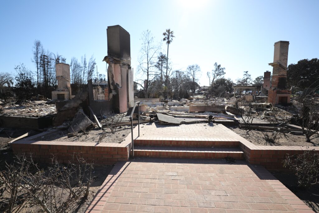 The remains of the residence of Msgr. Liam Kidney, pastor of Corpus Christi Church, is seen in Pacific Palisades.