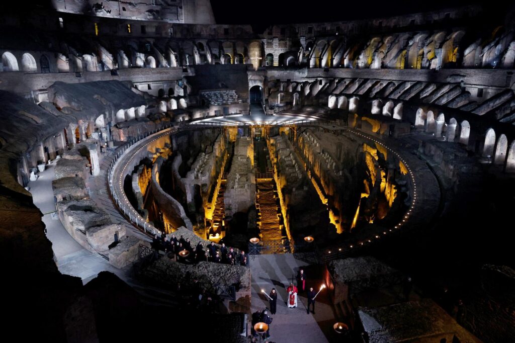 ROME (OSV News) — Inside the ancient arena of the Roman Empire that crucified Christ, Pope Leo XIV carried the cross through the darkness of night on Good Friday at Rome’s Colosseum, leading about 30,000  in prayer for the sufferings of the modern world.