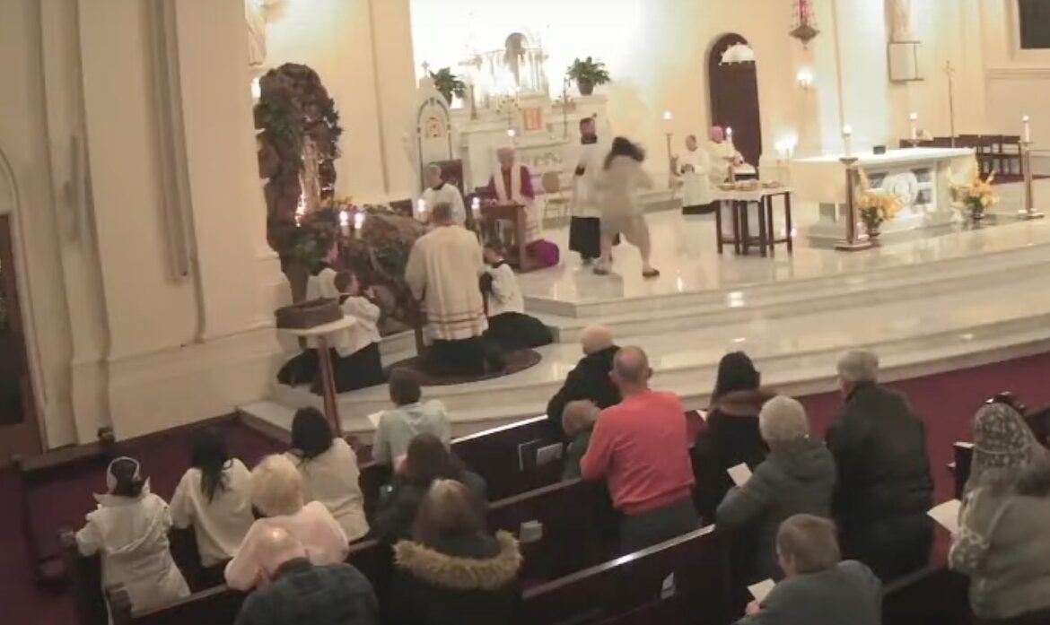 “Let’s say a Hail Mary for that disturbed gentleman” he said, before leading the congregation in Hail Mary. He later prayed again for “the disturbed man who charged the sanctuary tonight” along with other petitions for healing.