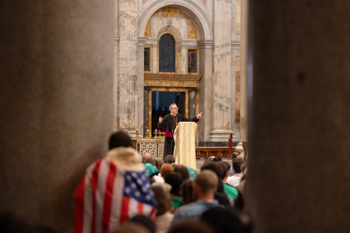 After U.S. Cardinal James Harvey, archpriest of the basilica, welcomed the pilgrims, Bishop Robert E. Barron of Winona-Rochester, Minnesota, gave the keynote address, highlighting the stories of several biblical figures and how “the Bible tells the story of a great adventure,” that of being called by God “to a higher life.”