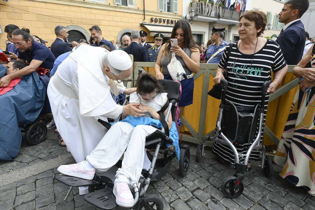 “We are the church of the Lord, a church of the poor — all precious, all active participants, each one bearing a unique word from God,” the pope said Aug. 17 as he celebrated Mass at the Shrine of Santa Maria della Rotonda in Albano Laziale, Italy, with about 110 clients and volunteers of the Diocese of Albano’s Caritas programs, including people experiencing homelessness and residents of its shelter for families.