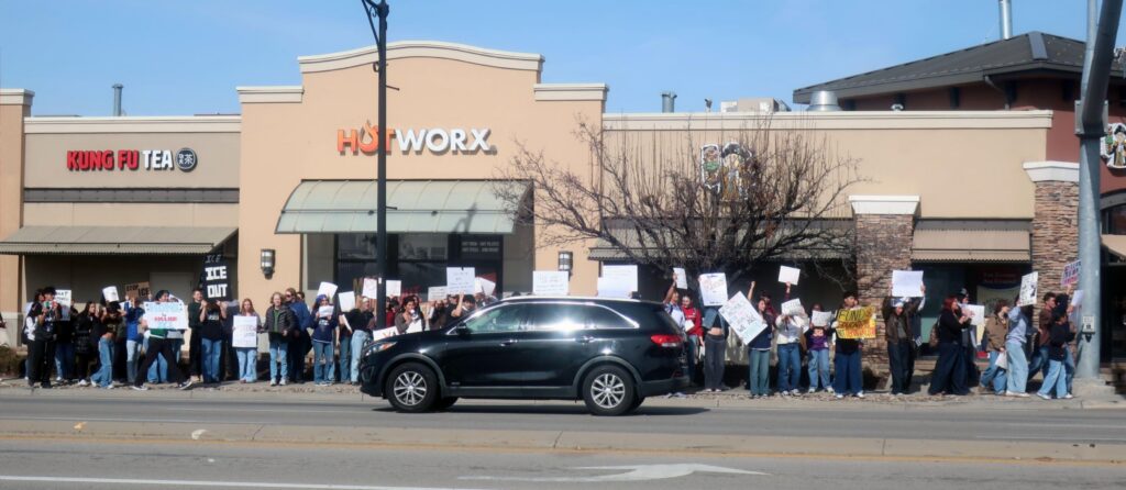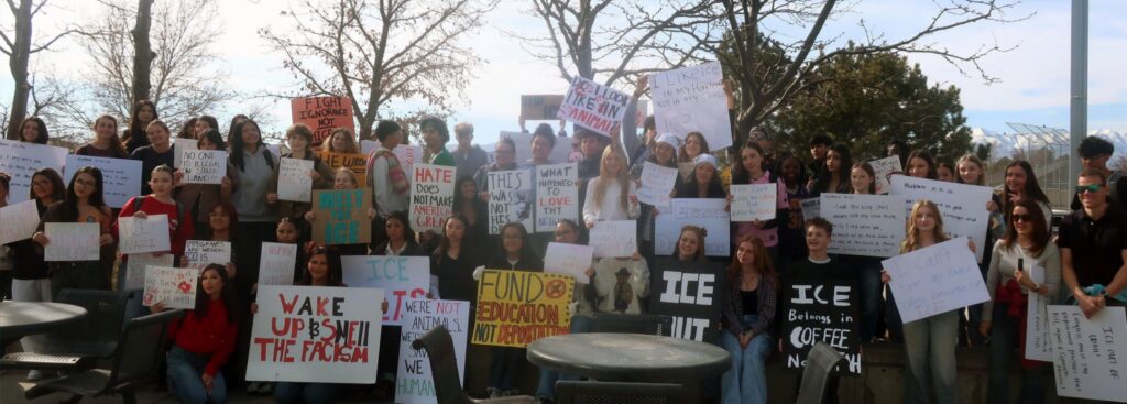 Carrying signs that included “ICE Out,” “ICE belongs in coffee not in Utah” and “Fund education not detention,” students walked a few blocks from the school to a main thoroughfare, then did a loop of the downtown area before returning to their campus. Many motorists honked their horns loudly in support of the students.