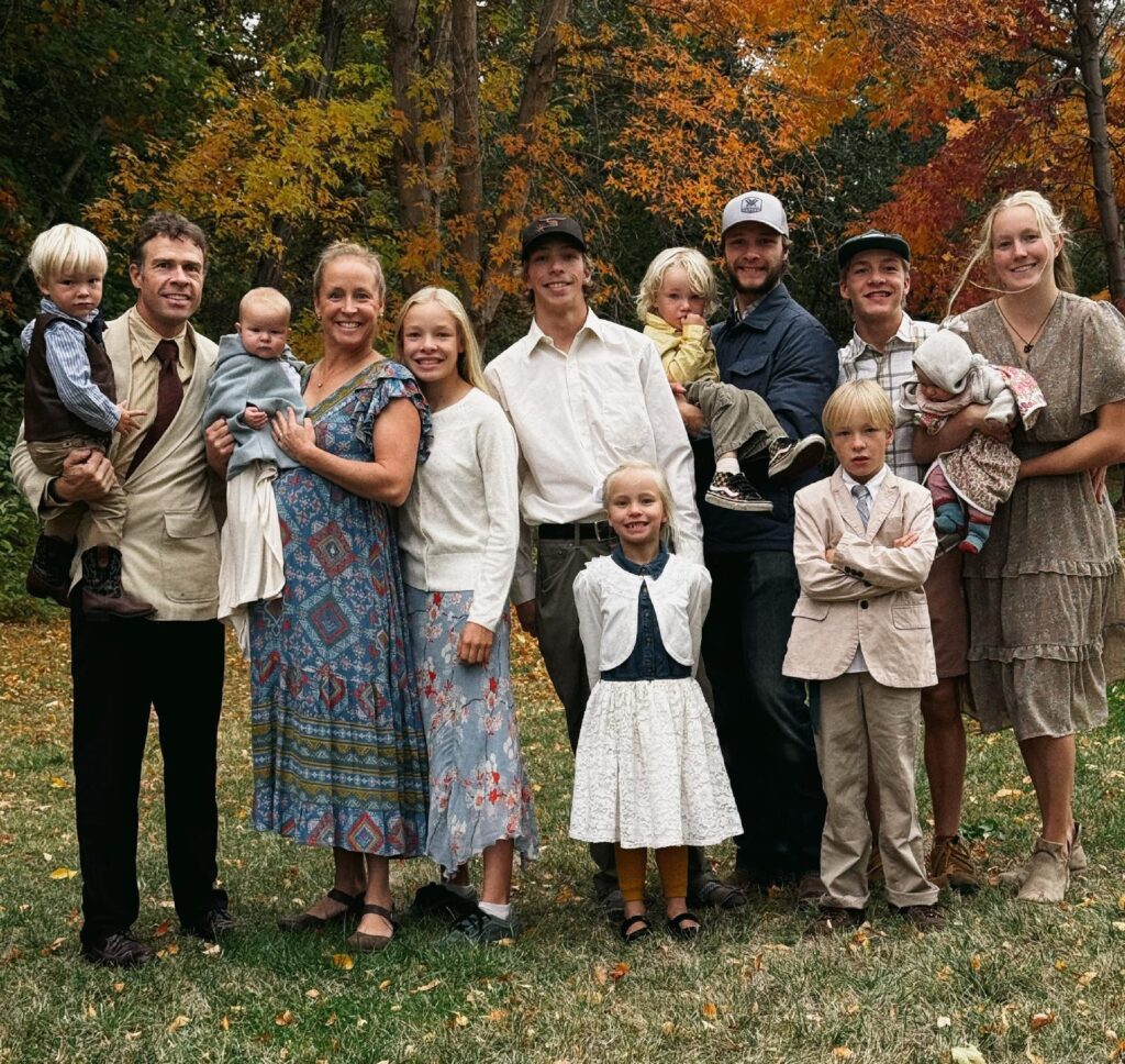 These days, Dussault is still skiing, often past chickens and cows on her 55-acre homestead in Sandpoint, Idaho. She has eight born children — Tabor, 24; Simeon, 19; Anselm, 15; Emiliana, 12; Remi, 9; Nellie, 6; Narek, 2; and Gretta, 9 months. She also has two grandkids from her son Tabor and his wife, Hattie: Regis, 3, and Skadia, 5 months.