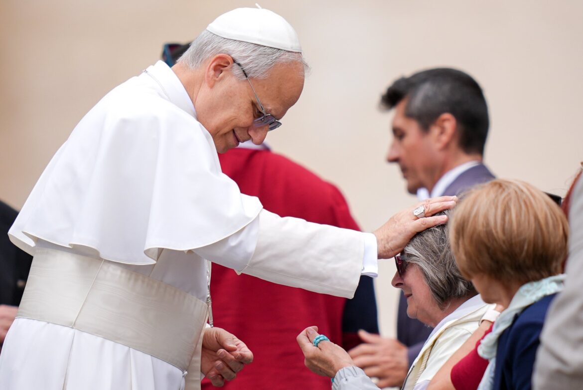 Pope Leo arrived in the popemobile for the audience, riding through the crowd in St. Peter’s Square and stopping often to bless infants, tracing the sign of the cross on their foreheads.