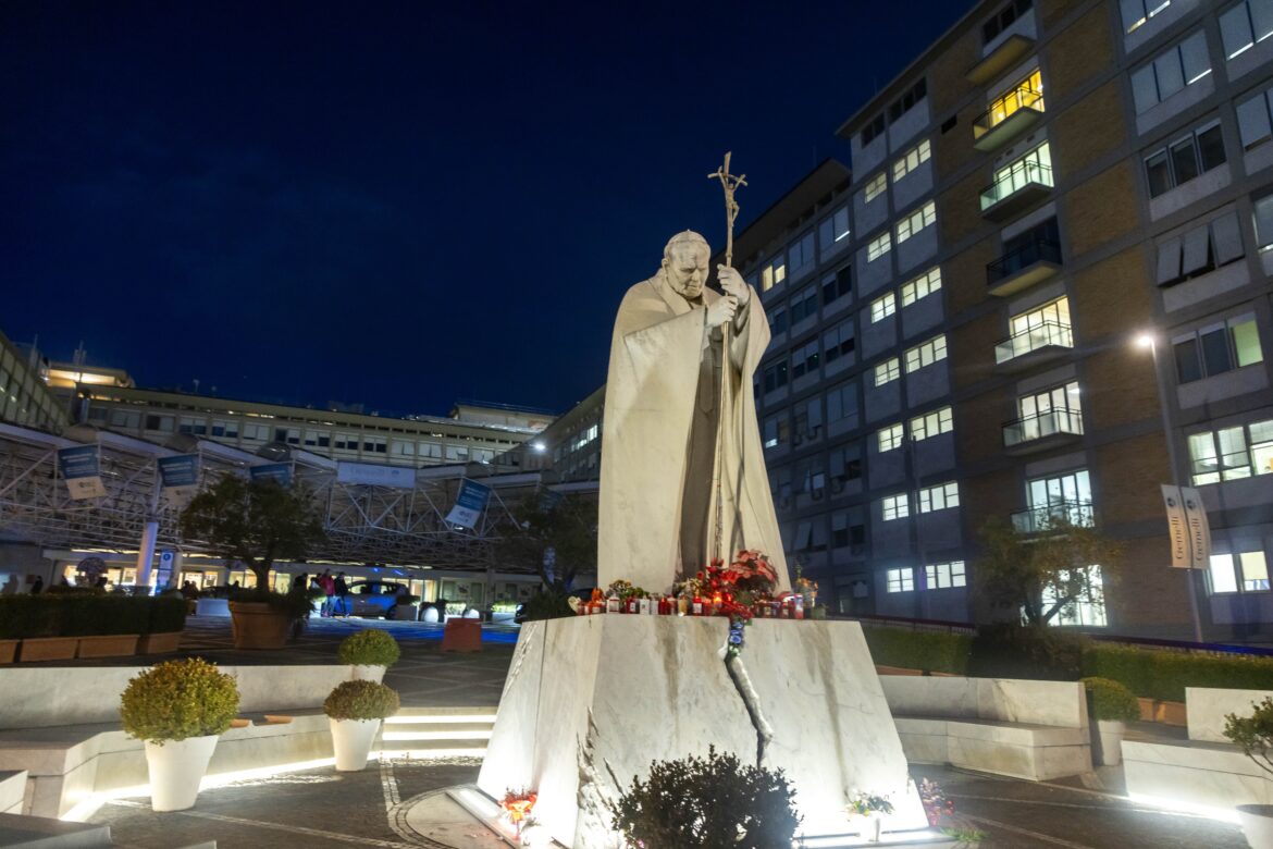 The Vatican press office had announced the morning of Feb. 14 that the pope, after holding his regularly scheduled morning meetings, would be “admitted to the Agostino Gemelli Polyclinic for some necessary diagnostic tests and to continue, in a hospital setting, treatment for bronchitis that is still ongoing.”