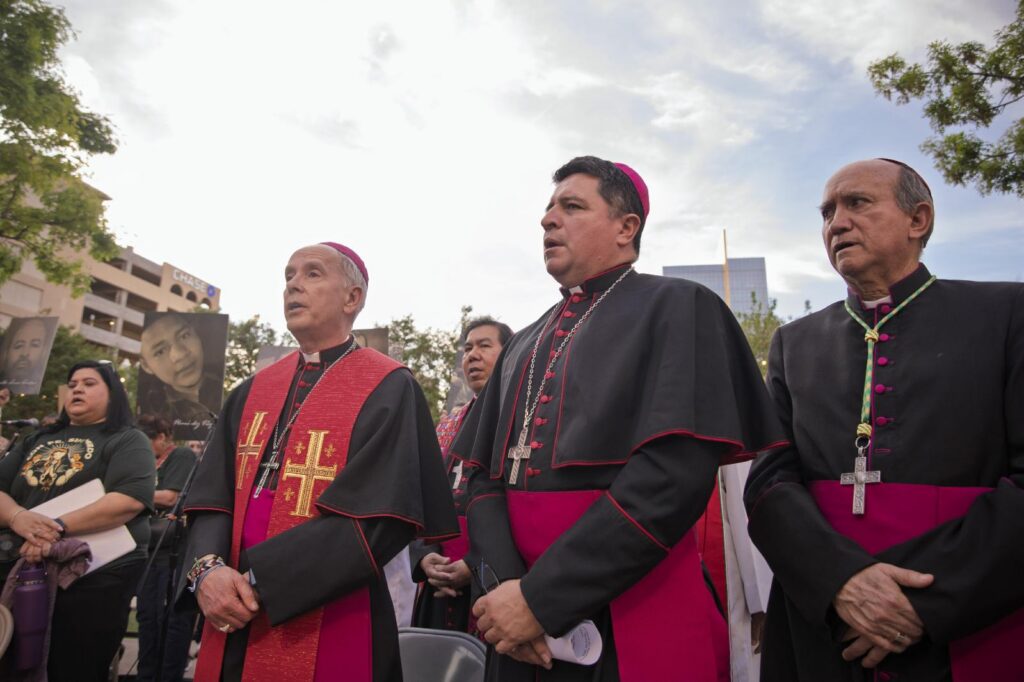 Bishop Seitz, who earlier in March released a pastoral letter on mass deportations and detentions, led the march along with Bishop Anthony C. Celino, auxiliary bishop of El Paso, and fellow visiting Catholic bishops, including Bishop Brendan J. Cahill of Victoria, Texas, chair of the U.S. Conference of Catholic Bishops‘ Committee on Migration, Bishop Guadalupe Torres Campos of Ciudad Juárez, Mexico, and Bishop Evelio Menjivar, auxiliary bishop of Washington.