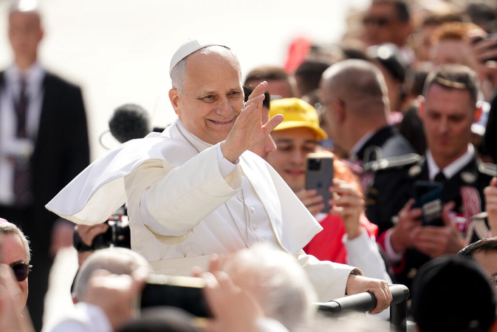 Pope Leo XIV smiles as he arrives at the church of St. Devota for a meeting with young people and catechumens, as part of a one-day trip in Monaco, March 28, 2026. It is Pope Leo’s first international journey of 2026 and only the second of his pontificate. (OSV News photo/Guglielmo Mangiapane, Reuters)