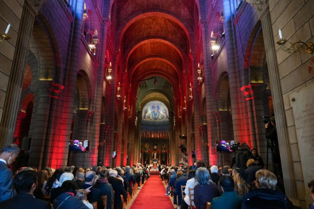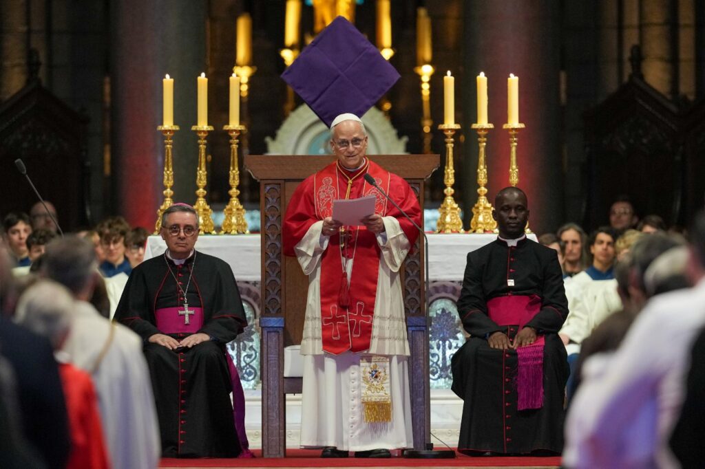 Pope Leo XIV leads a midday prayer with the Catholic community at the Cathedral of Our Lady of the Immaculate Conception of Monaco during the pontiff’s apostolic trip to the city-state March 28, 2026. It is Pope Leo’s first international journey of 2026 and only the second of his pontificate. (CNS photo/Lola Gomez)