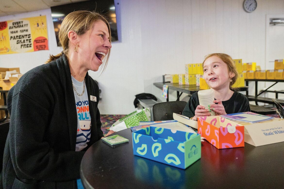 Kindergarten-through-fifth grade students from more than 200 Nativity families have opted to trade smartphones for the old-fashioned landline. They gathered at Skate City in Overland Park Feb. 23 to pick up a Tin Can phone and a goodie bag with resources on digital health education.