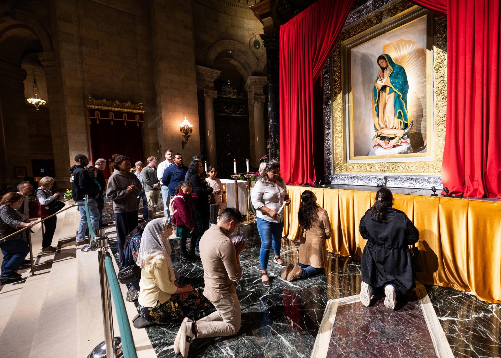 In St. Paul, after Mass and a video that told the story of Mary appearing to St. Juan Diego in December 1531, two long lines of people formed to venerate the statue.