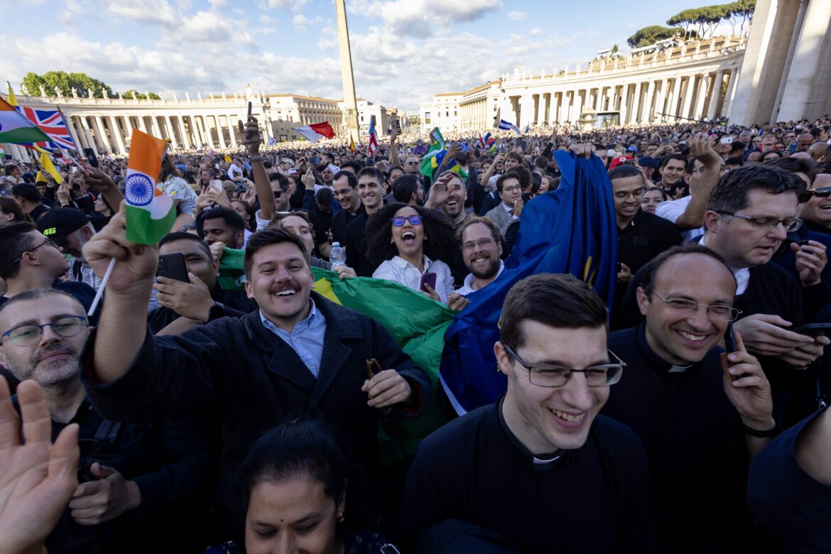 VATICAN CITY (CNS) — When white smoke came pouring out of the Sistine Chapel chimney and the bells of St. Peter’s Basilica started pealing, people who had been relaxing at cafes or sitting in the shade went running or quickly walking toward St. Peter’s Square.