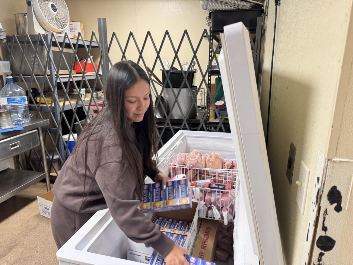 In another example of parishes in the archdiocese responding to the needs of immigrant families, volunteers at St. Stephen-Holy Rosary in Minneapolis, the heart of a large Latino community, unpacked 300 pounds of donated chicken Feb. 6 and placed the packages into a freezer. Romaine lettuce, baby spinach and other vegetables were unpacked next and placed into Ziploc bags on their way to about 165 families in need.
