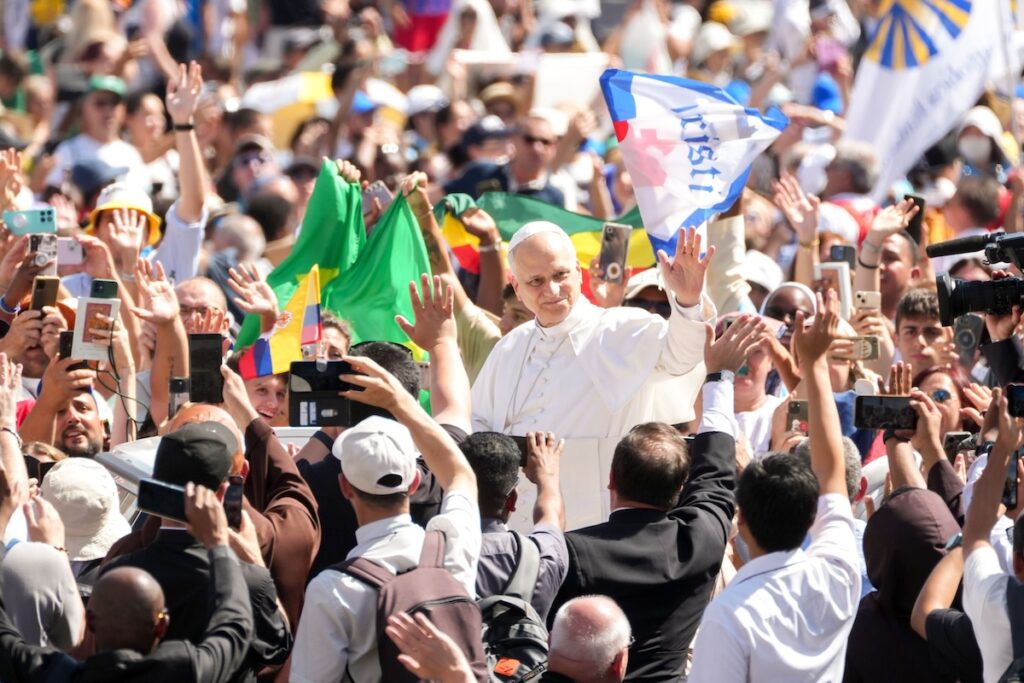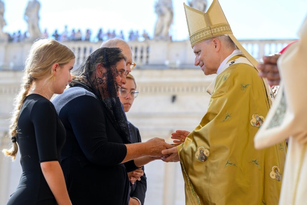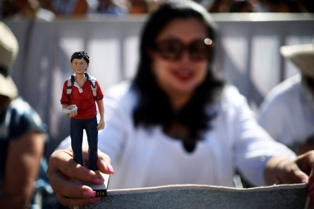 Pope Leo XIV gives a surprise pre-Mass greeting to the more than 80,000 people gathered in St. Peter’s Square, ahead of the canonization Mass of Blessed Carlo Acutis and Blessed Pier Giorgio Frassati Sept. 7, 2025. (OSV News photo/Guglielmo Mangiapane, Reuters)More than 80,000 people gather in St. Peter’s Square at the Vatican for the canonization Mass of Sts. Pier Giorgio Frassati and Carlo Acutis celebrated by Pope Leo XIV Sept. 7, 2025. (CNS photo/Lola Gomez)A woman holds a figure depicting Blessed Carlo Acutis on the day Pope Leo XIV leads the canonization Mass of Acutis, a British-born Italian boy who will become the first millennial to be made a Catholic saint, and Blessed Pier Giorgio Frassati, in St. Peter’s Square at the Vatican, Sept. 7, 2025. (OSV News photo/Guglielmo Mangiapane, Reuters)Pope Leo XIV reads the canonization formula declaring Blessed Carlo Acutis and Blessed Pier Giorgio Frassati saints during Mass in St. Peter’s Square at the Vatican Sept. 7, 2025. (CNS photo/Lola Gomez)Reliquaries containing the relics of St. Carlo Acutis and St. Pier Giorgio Frassati stand at the foot of a statue of Mary during the canonization Mass celebrated by Pope Leo XIV in St. Peter’s Square at the Vatican Sept. 7, 2025. (CNS photo/Lola Gomez)“Dear friends, Saints Pier Giorgio Frassati and Carlo Acutis are an invitation to all of us, especially young people, not to squander our lives, but to direct them upwards and make them masterpieces,” Pope Leo XIV said in his homily for the canonization Mass of Sts. Pier Giorgio Frassati and Carlo Acutis held Sept. 7, 2025 in St. Peter’s Square. (CNS photo/Lola Gomez)Pope Leo XIV receives the offertory gifts from Antonia Salzano, mother of St. Carlo Acutis, and her family during the canonization Mass in St. Peter’s Square at the Vatican Sept. 7, 2025. From left to right are Francesca Acutis, Salzano, Andrea Acutis and Michele Acutis. (CNS photo/Vatican Media)Pope Leo XIV gives his blessing at the conclusion of Mass in St. Peter’s Square at the Vatican for the canonizations of Sts. Pier Giorgio Frassati and Carlo Acutis Sept. 7, 2025. (CNS photo/Lola Gomez)Pope Leo XIV greets pilgrims from the popemobile after celebrating the canonization Mass of Sts. Carlo Acutis and Pier Giorgio Frassati in St. Peter’s Square at the Vatican Sept. 7, 2025. (CNS photo/Lola Gomez)