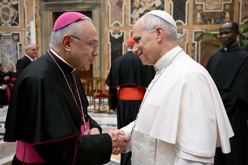 VATICAN CITY (CNS) — The priests who staff nunciatures and other Vatican diplomatic missions around the world must be priests first and diplomats second, Pope Leo XIV told them.