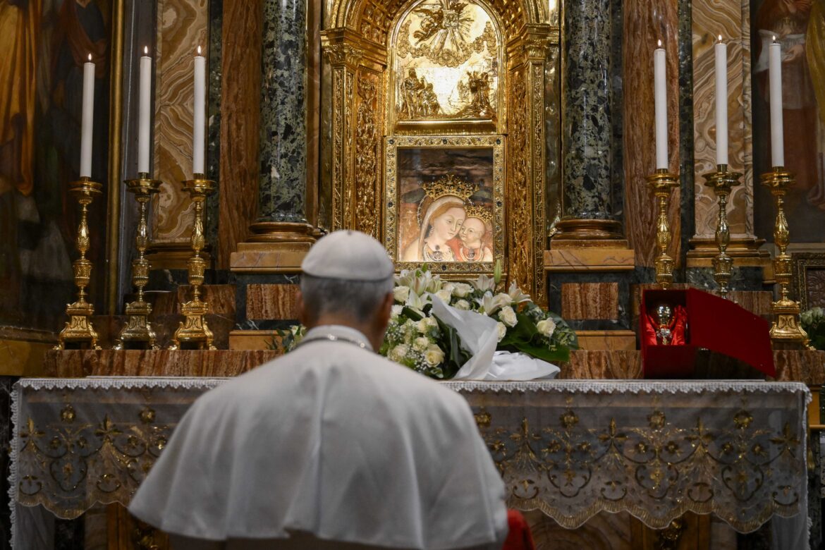 And on his way back to the Vatican May 10, he went to Rome’s Basilica of St. Mary Major, stopping to pray at the tomb of Pope Francis and before the icon of Mary “Salus Populi Romani” (health of the Roman people).