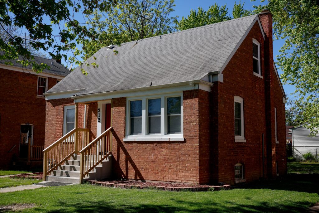 The pope’s childhood home is a small brick structure, now with concrete front stairs and wooden railings leading to a bright red front door. A small card with the picture of Pope Leo XIV was tucked behind the mailbox on the wall next to the door.