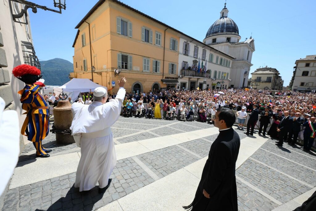 The pope had walked to the cathedral from a rear exit of the papal villas and gardens near the Jesuit-run Vatican Observatory, which opens onto the town of Albano Laziale. He waved to the hundreds of people lining the streets and watching on giant screens in the square.