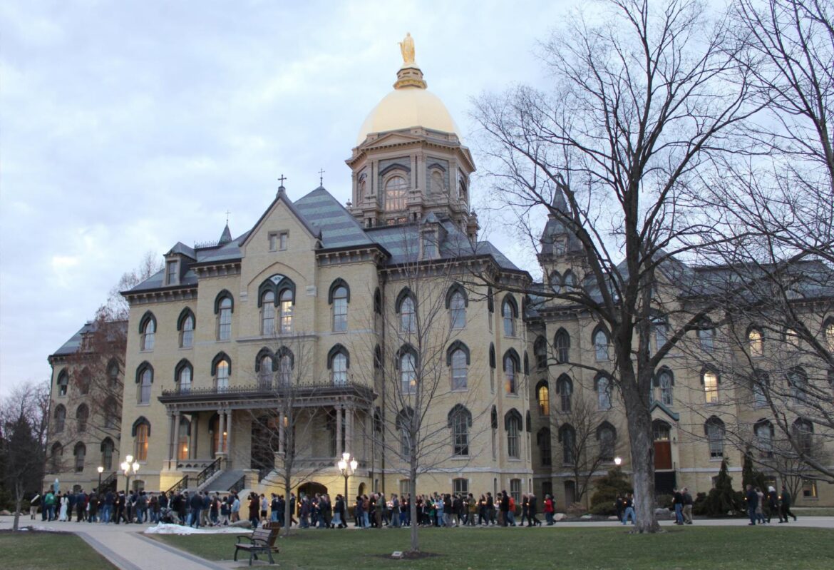 SOUTH BEND, Ind. (OSV News) — About 100 people gathered on the campus of the University of Notre Dame Feb. 27 for an early evening event that organizers had been calling their “March on the Dome” just the day before.