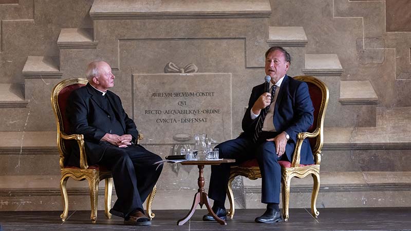 In the evening, in the Vatican’s Palazzo della Cancelleria, Alito sat down for a public conversation with Msgr. Laurence Spiteri, a priest of the Archdiocese of Los Angeles and a judge on the Roman Rota, a Vatican court.