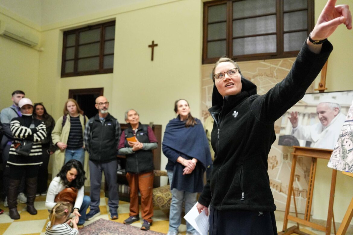 The orientation offered to visitors includes some catechesis, although it does not look or sound like a CCD class. The sisters explain who the pope is, why he is important and what the meaning of his blessing is.