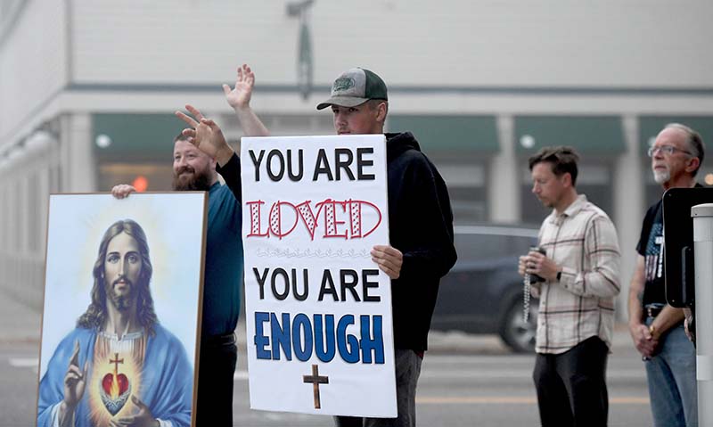 Julie Laflamme, who is a close friend of Will and his wife, Tiffany, joined them on the corner that morning to pray the rosary.